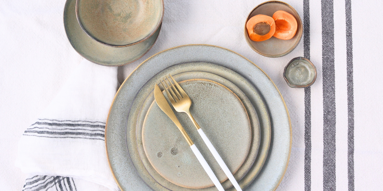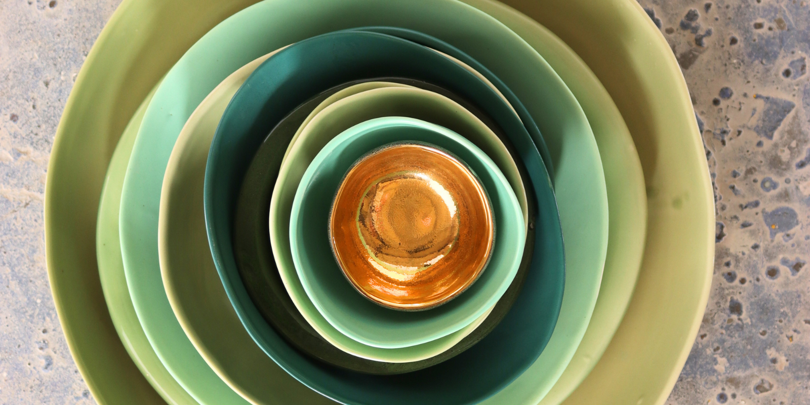 Real golds are exclusively ground for us by a generations-old company in India, prepared for glazing in our Cape Town studio, and hand-applied to every piece in this luxe line. They are food-safe and used by Michelin-starred and award-winning chefs, iconic creatives.